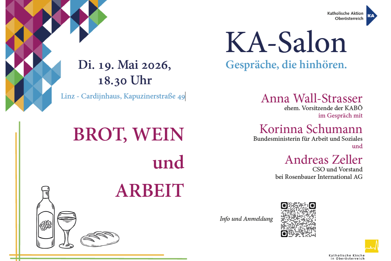 Die Katholische Aktion (KA) ist die offizielle Laienorganisation der katholischen Kirche in Österreich. In Verbundenheit mit den Bischöfen verwirklicht sie den Sendungsauftrag der Kirche. In der KA engagieren sich Kinder, Jugendliche, Frauen und Männer gemäß ihrer Berufung als Christinnen und Christen. Katholische Aktion - die Radikalität des Evangeliums in der Normalität des Alltags leben!